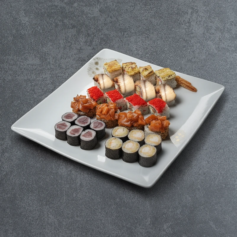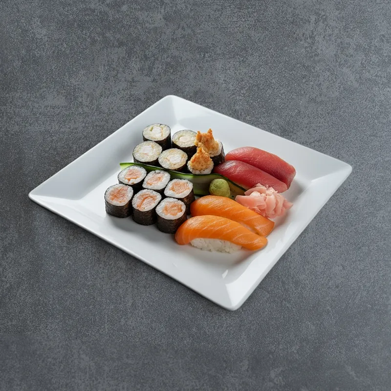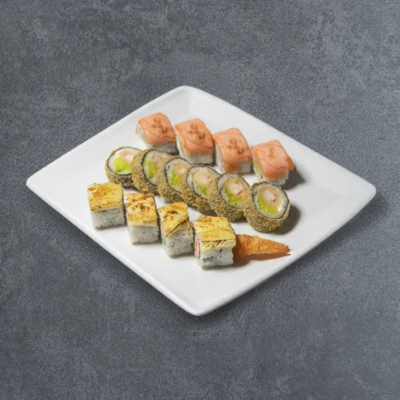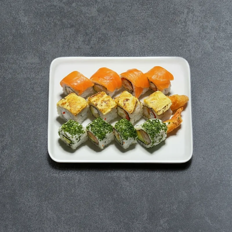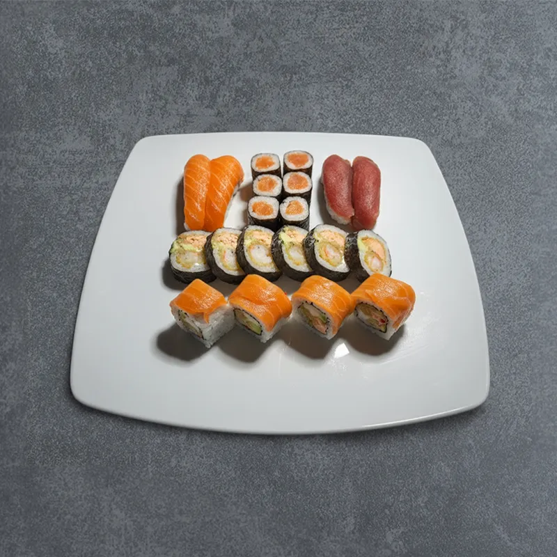 Futomaki crevette, Califronia ebi saumon, Maki saumon, Nigiri thon, Nigiri saumon