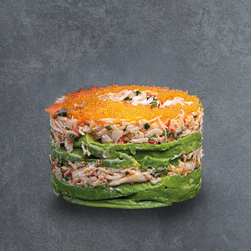 Crabe.saumon, crevette, thon avocat, tobiko, oignon