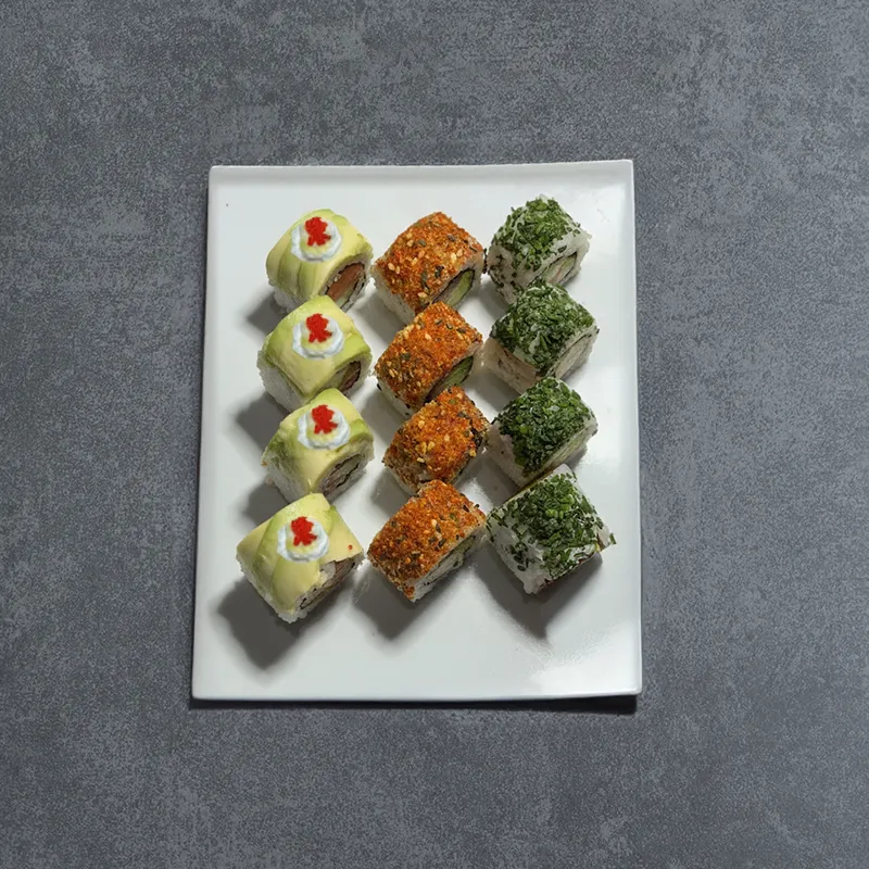 Aromaki saumon, California thon épicé, California avocat, 2 pièces sashimi, Nigiri anguille